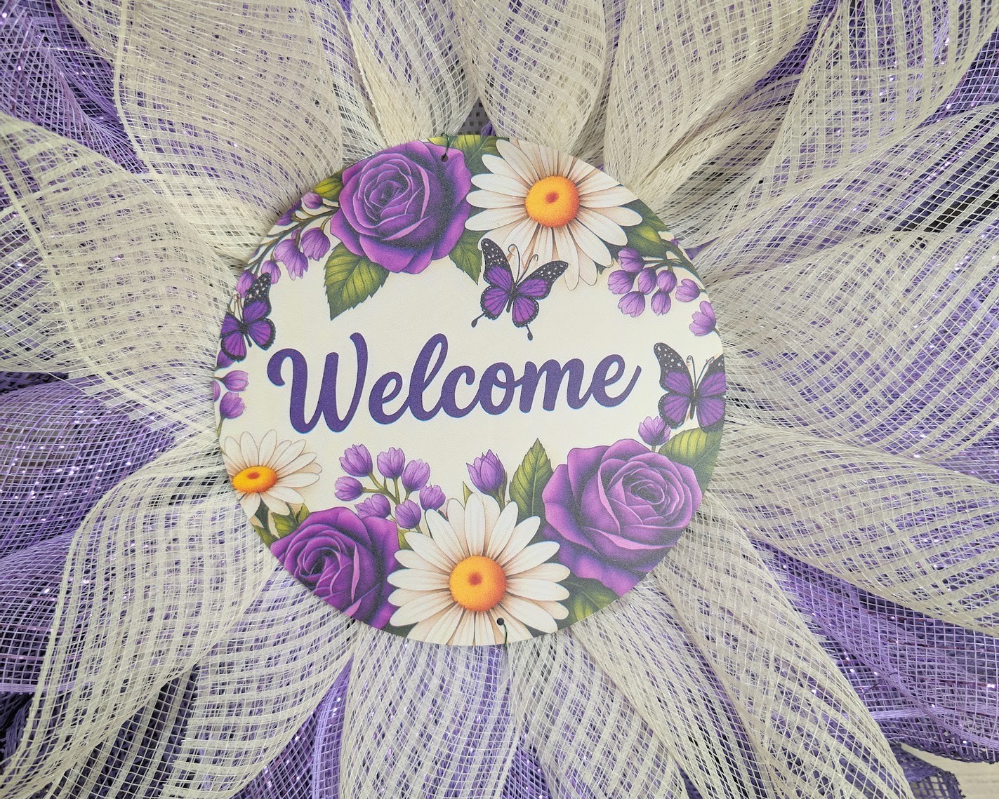 Purple Wreath Front Door Welcome Spring Summer Floral Door Decor Handmade Gift