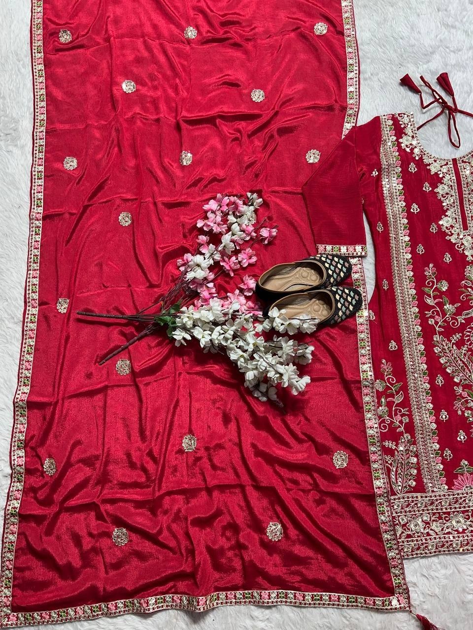 Kurta Palazzo Set Embroidered Designer Party Wear Suit Dupatta Set For Women