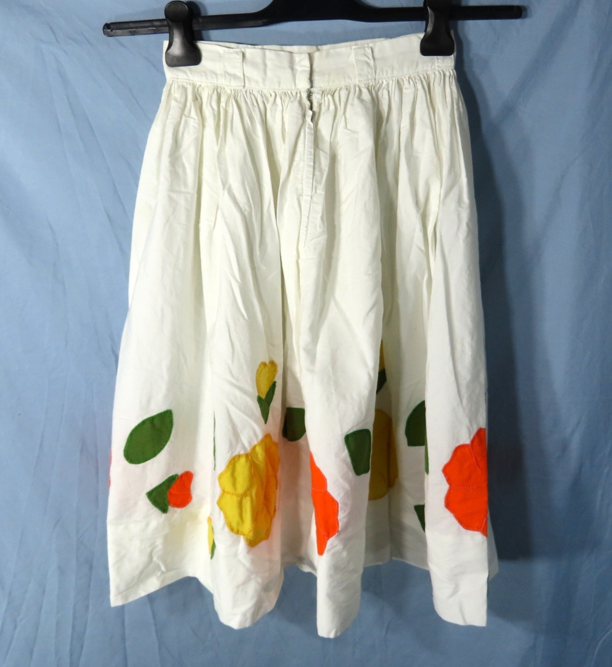 как выглядит VTG White Twill A-LINE SKIRT Applique Embroidered Flowers HIPPIE BOHO Cottage S фото