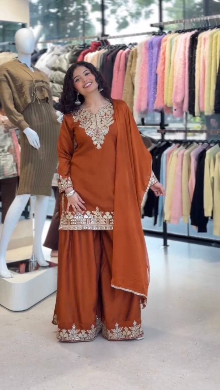 Kurta Palazzo Set Embroidered Party Wear Ethnic Suit Dupatta Set For Women
