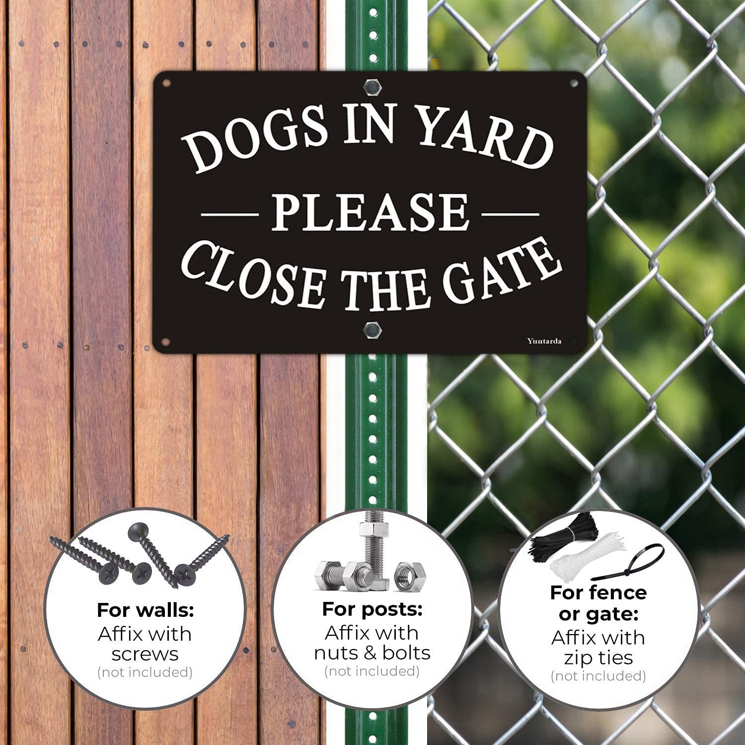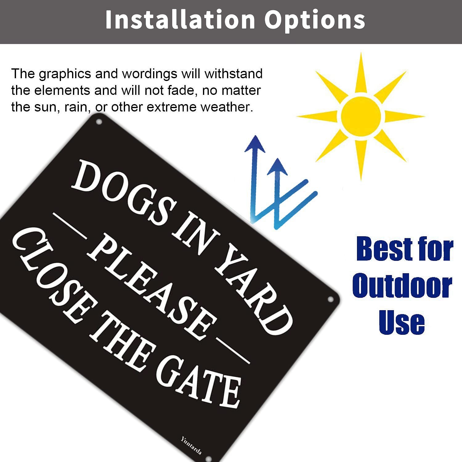 Dogs in Yard Please Close the Gate Sign, Yuntarda 2 Pack 10x7inches Reflecti...
