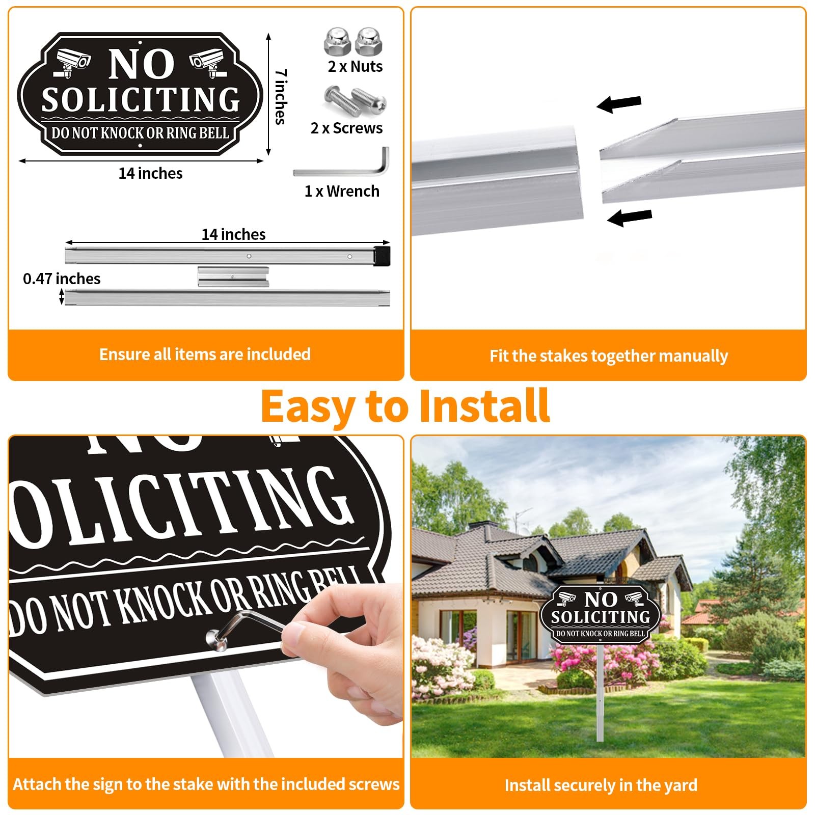 No Soliciting Sign for 14 x 7 inches no soliciting sign house, Black