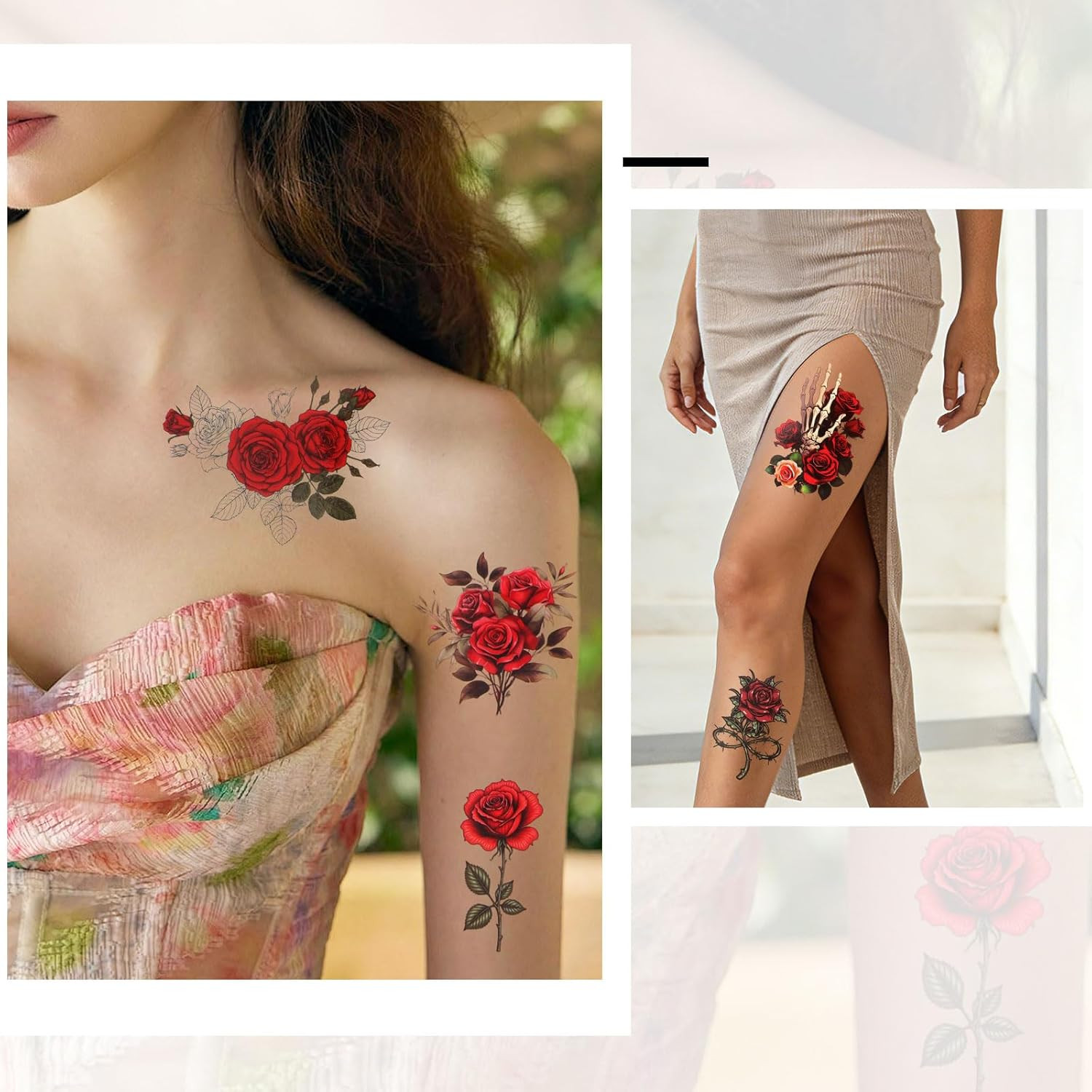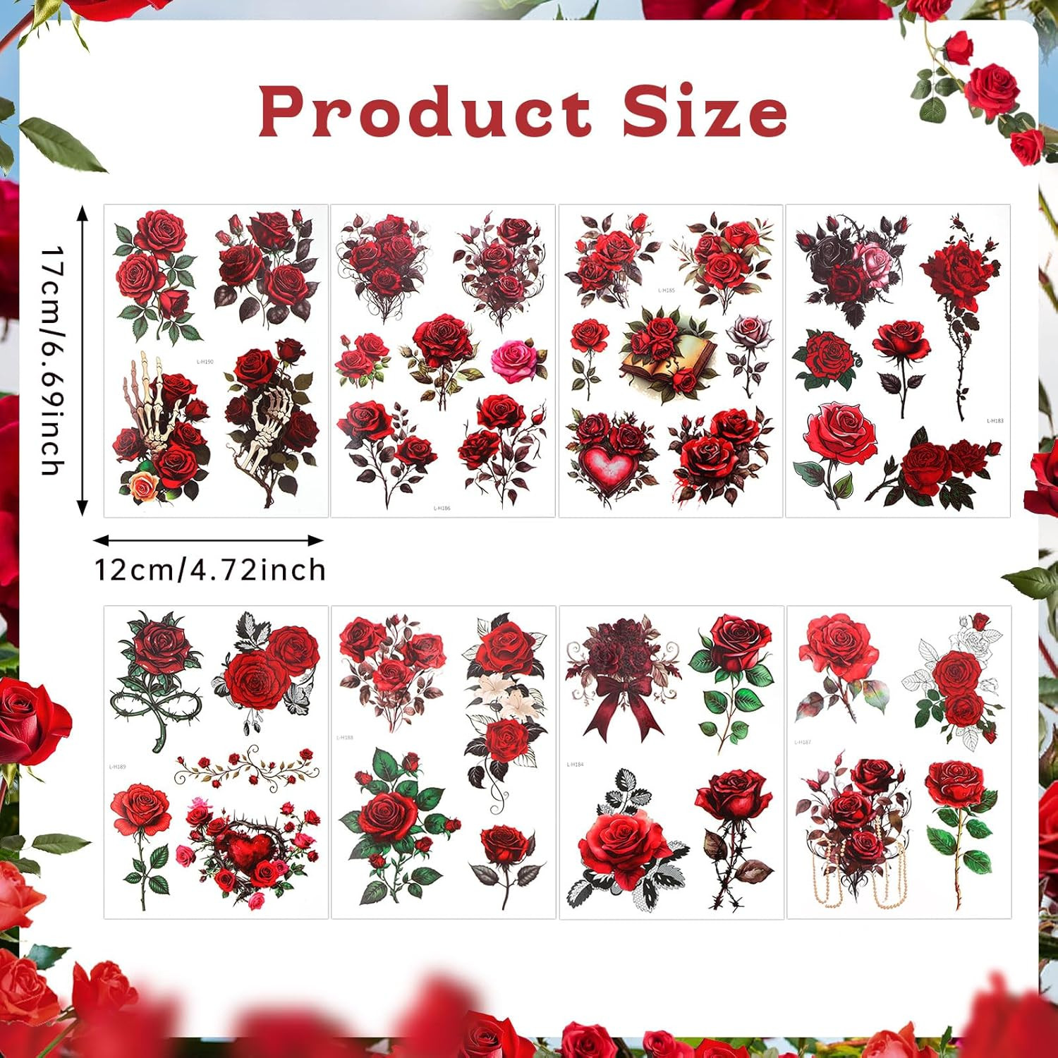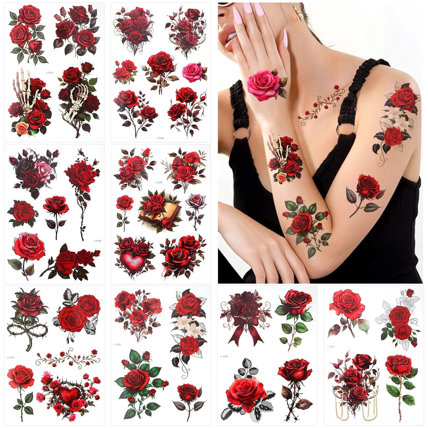 8 Sheets Rose Temporary Tattoos for Women - Perfect for Valentine's Day