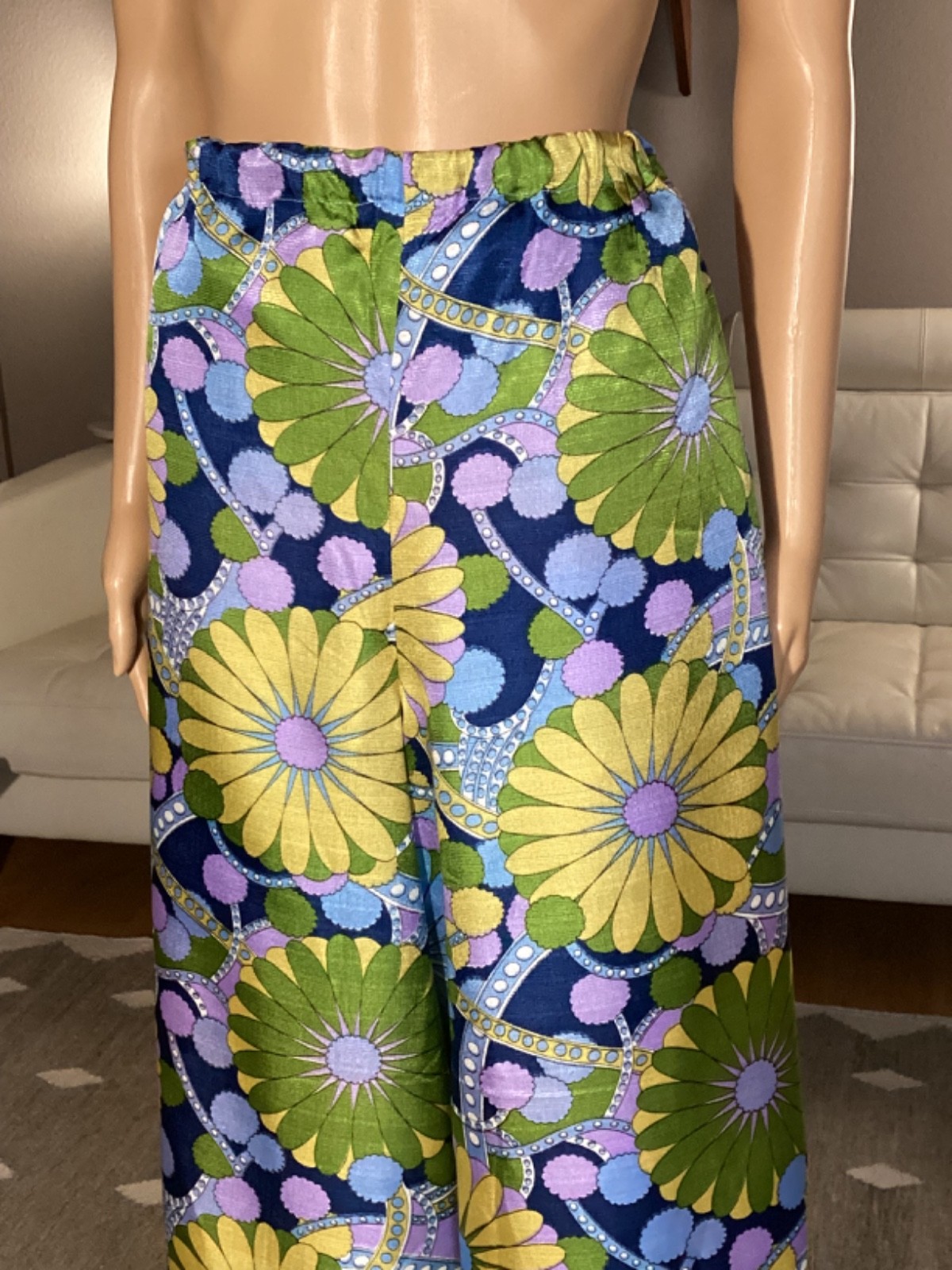 Vintage 60s 70s Psychedelic Flower Power Palazzo Wrap Pants Wide Leg Hippie