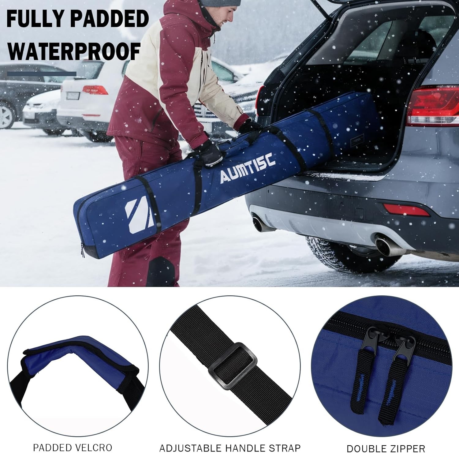 как выглядит Fully Padded Ski Bag Single Ski Bags Air Travel Waterproof Snow Ski Bag Durable фото