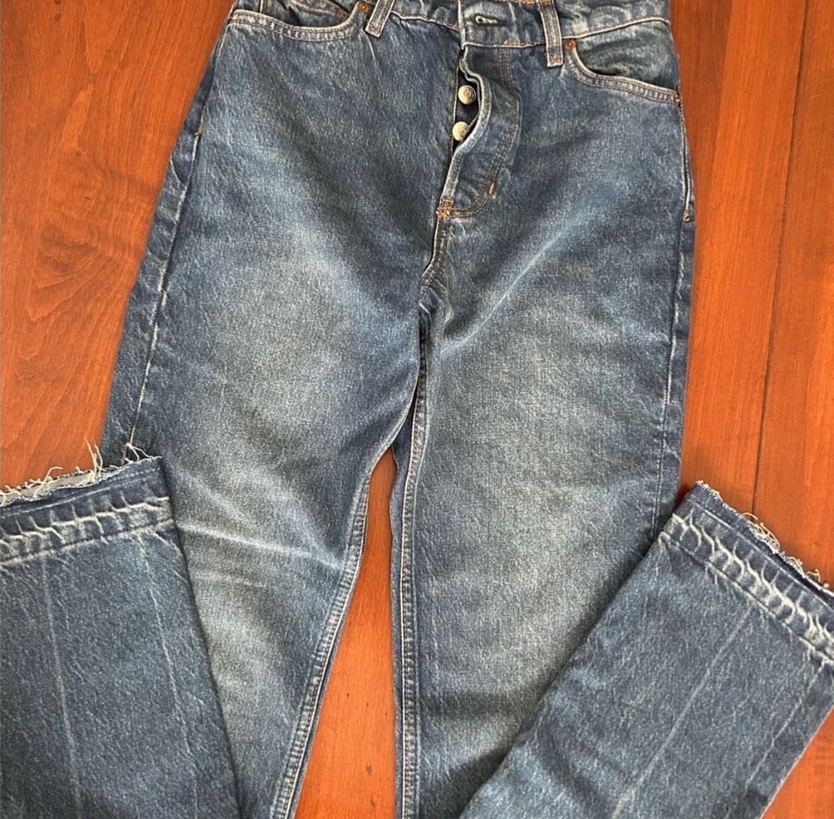как выглядит Reformation Cynthia Cuffed High Rise Straight Jeans фото