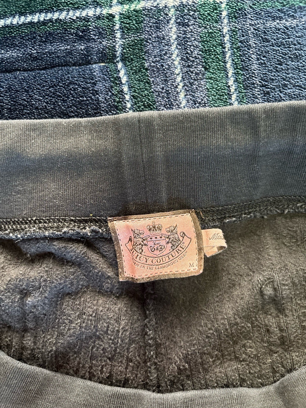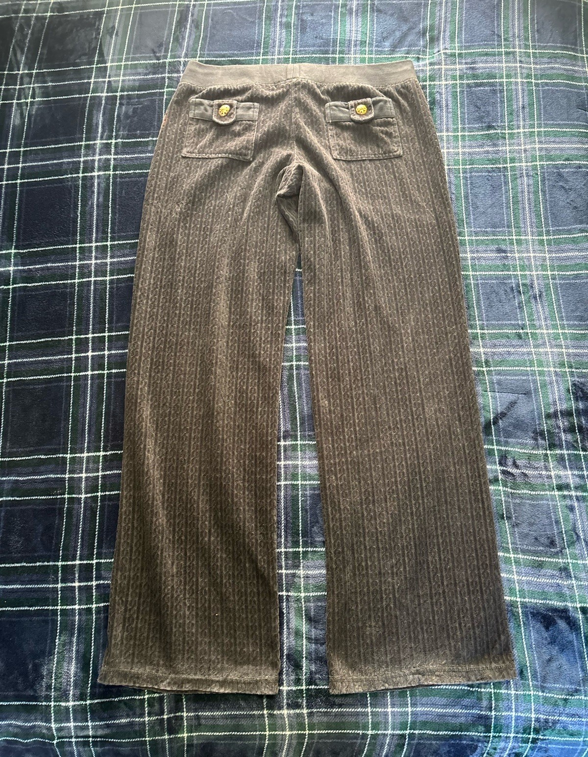 как выглядит Vintage Black textured velour Juicy Couture low rise sweatpants w/button detail фото