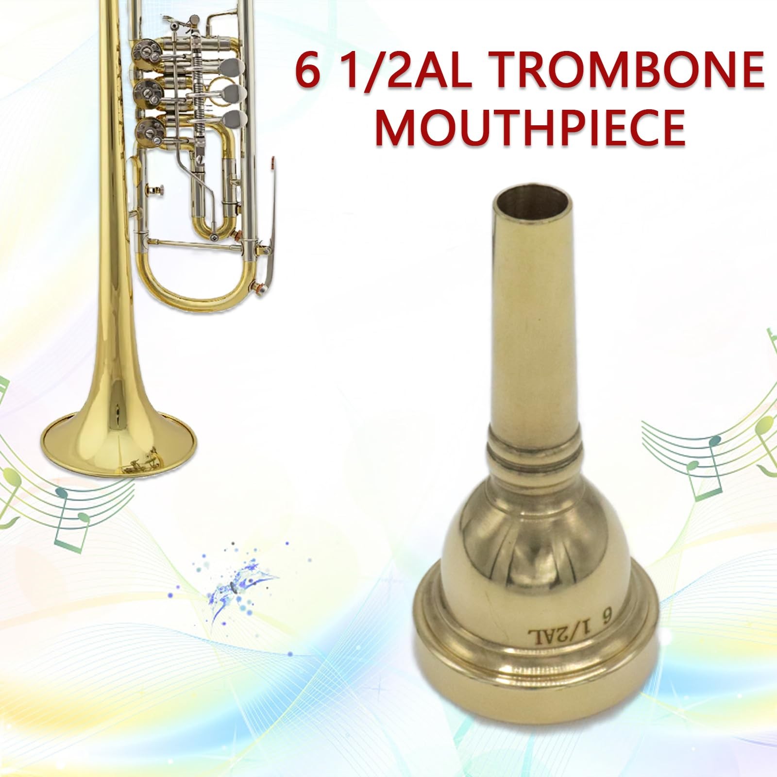 6 1/2AL Trombone Mouthpiece, Gold Plated Small Shank Mouthpiece, Euphonium Mo...