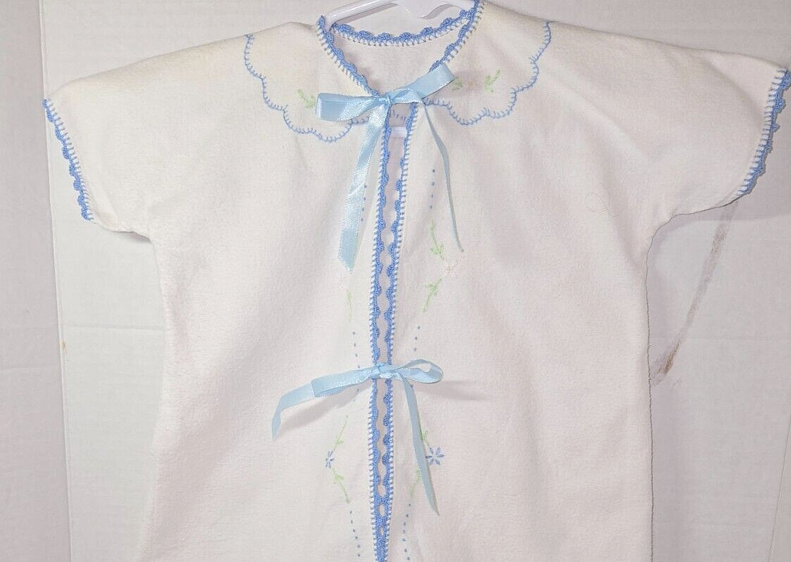 как выглядит Vintage Infant/Toddler Robe - Hand Embroidered Blue / White Flowers - Tie Front фото