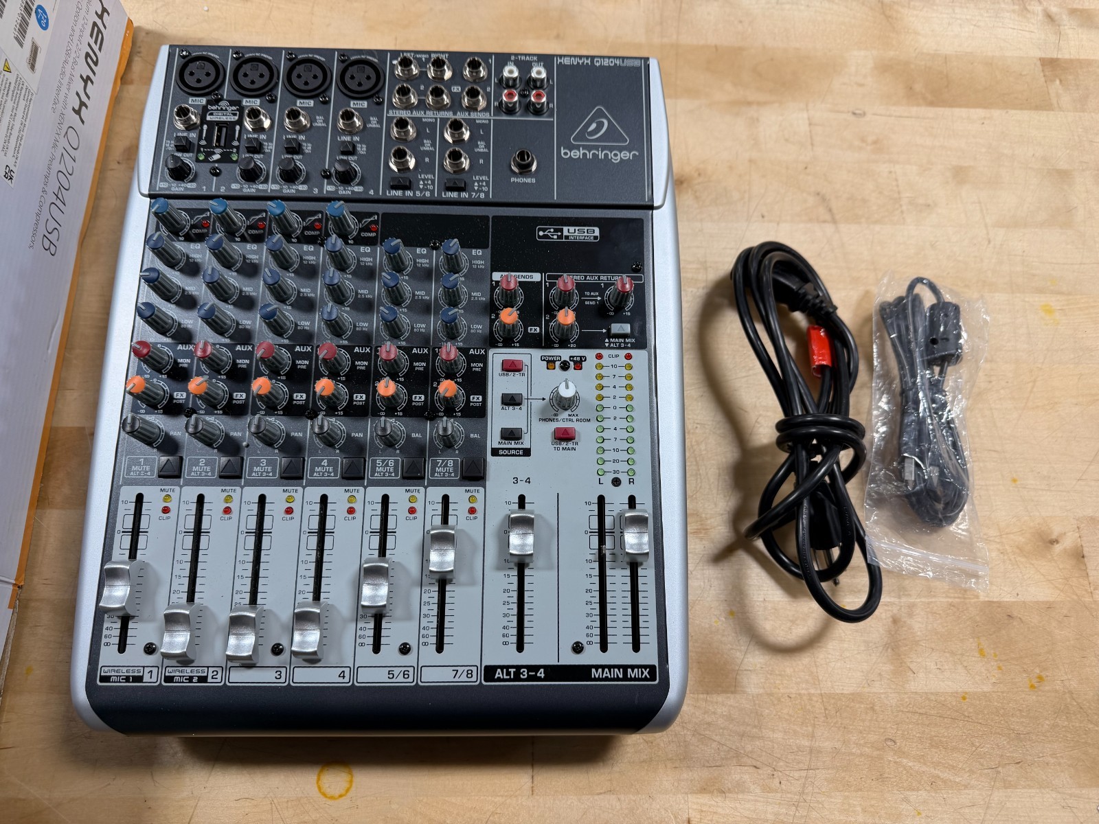 Behringer Xenyx Q120 USB 8 Channel Mixer with USB Power cords