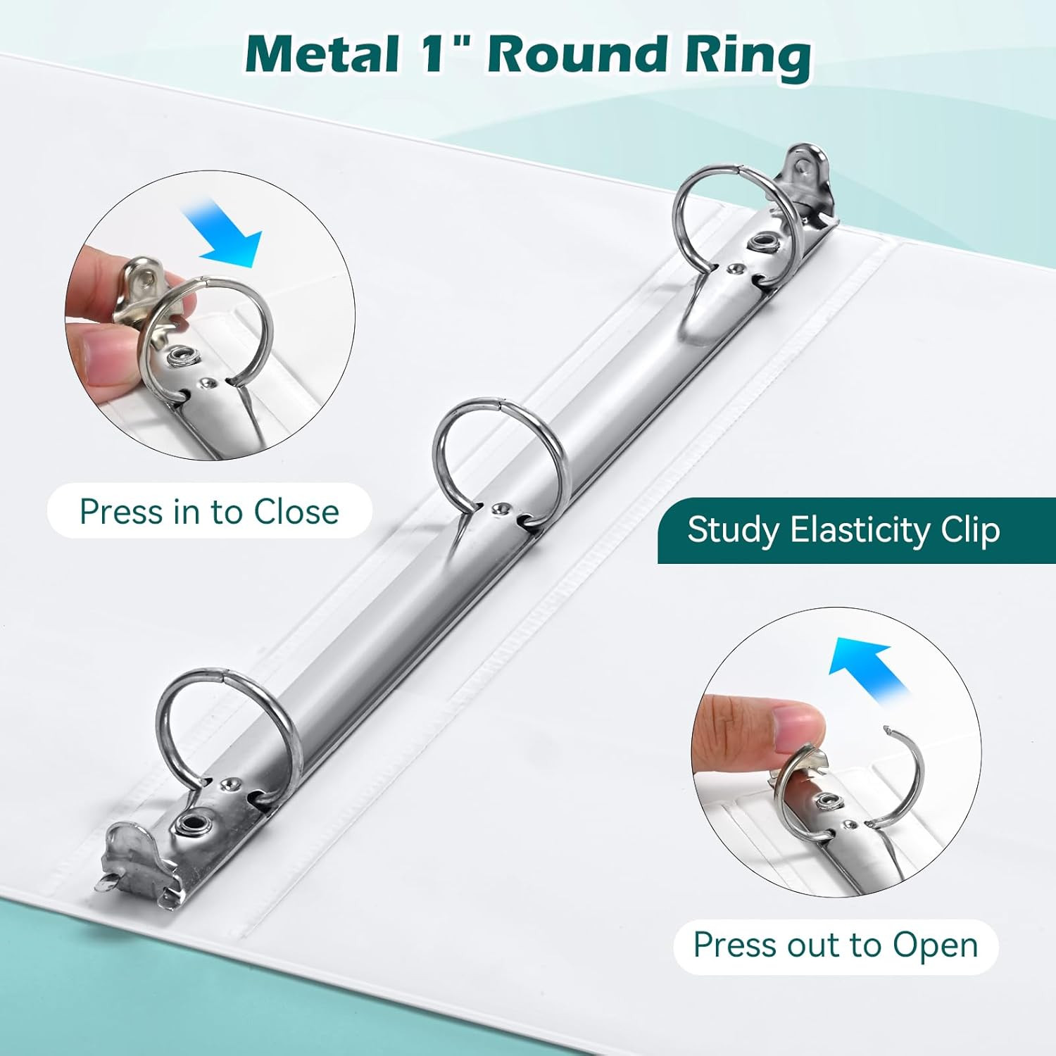 3 Ring Binder 1 Inch White Binder, 12 Pack 1 Inch Binders, Clear View Binder wit