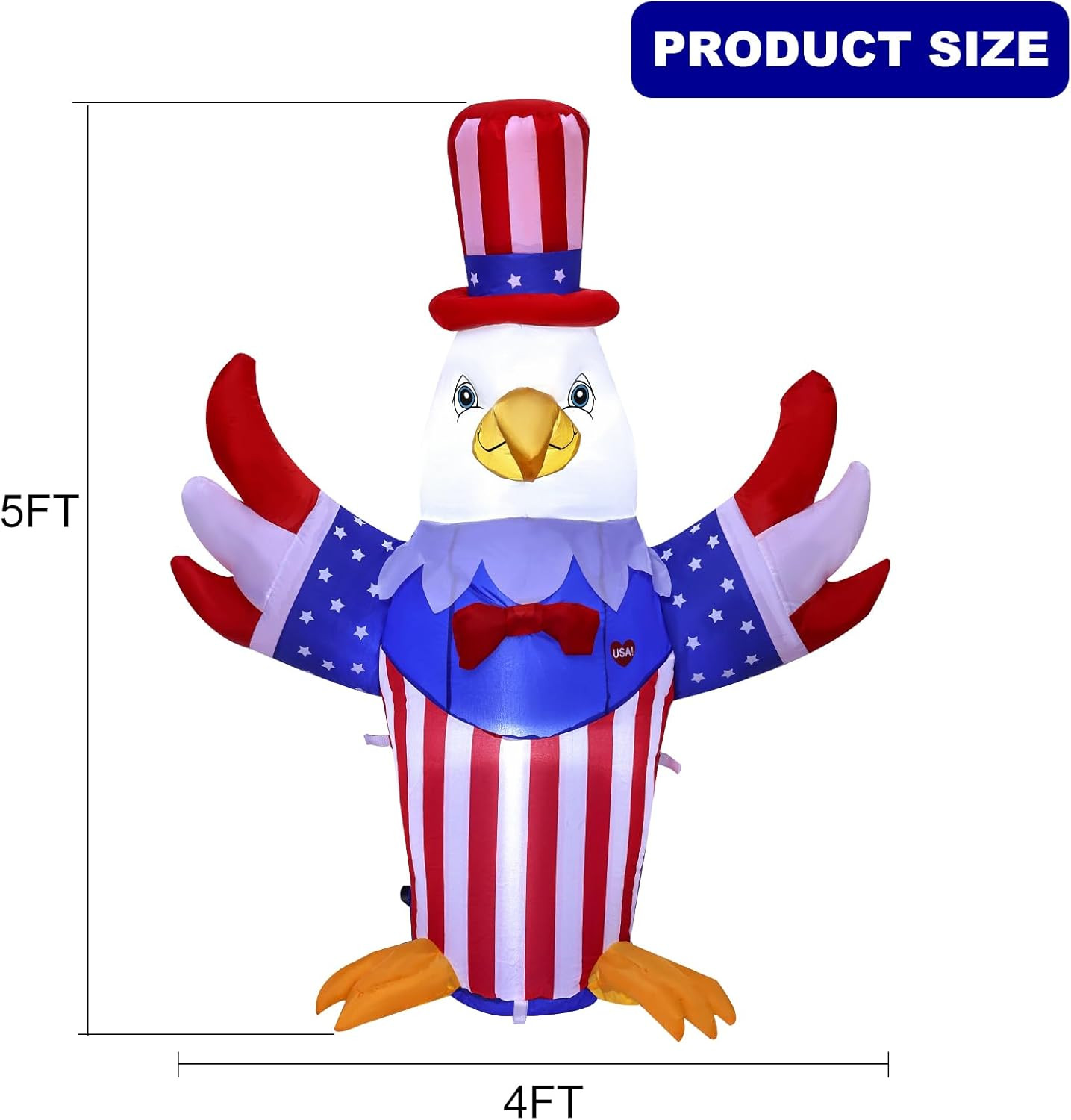 5Ft Independence Day Inflatable Decoration 4Th of July Patriotic Bald Eagle Outd