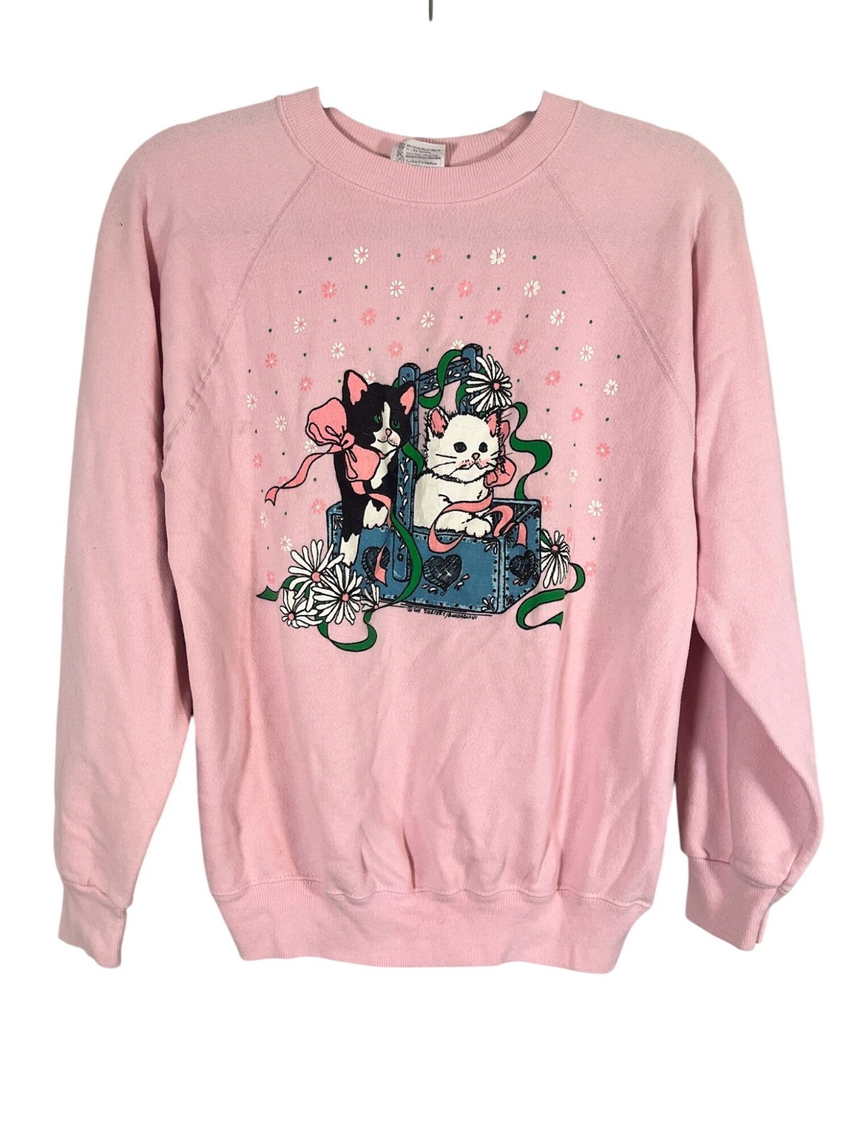 Vintage Cat Sweatshirt Grandmacore Cottagecore Pink M Retro 80s Boho Hippie Folk