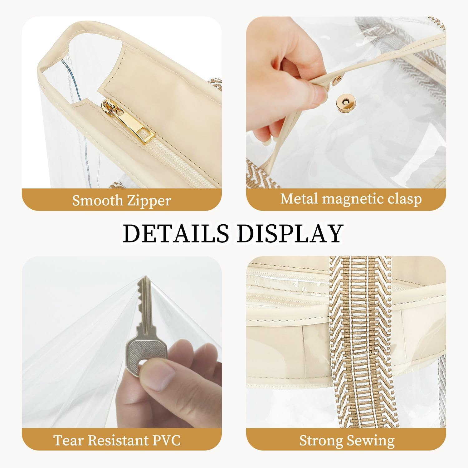 Clear Bag for Stadium Events, 12X6X12 Jelly Tote Bag for Women with Zipper for B