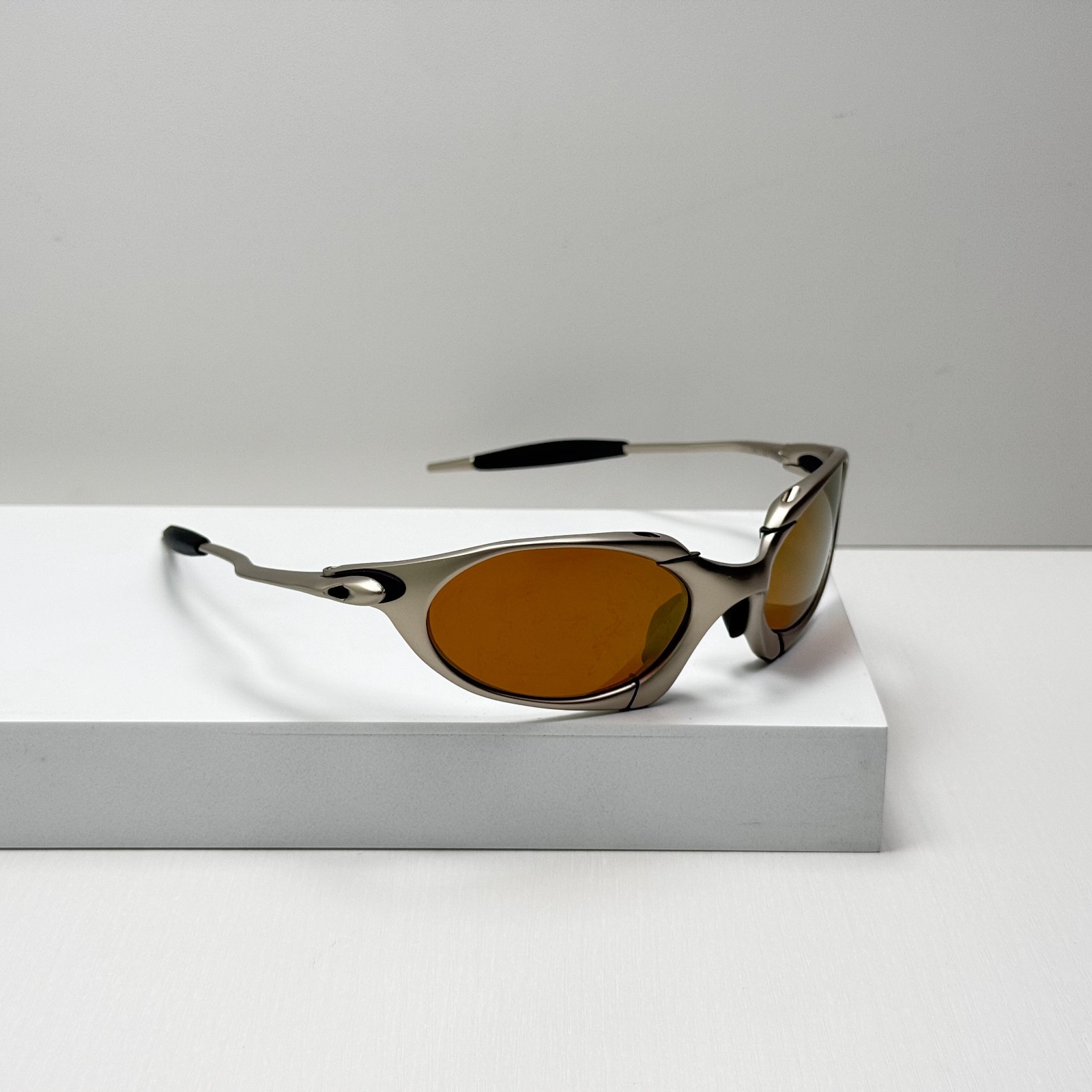 как выглядит Oakley Romeo X-Metal Sunglasses Silver Frame Brown Lens фото