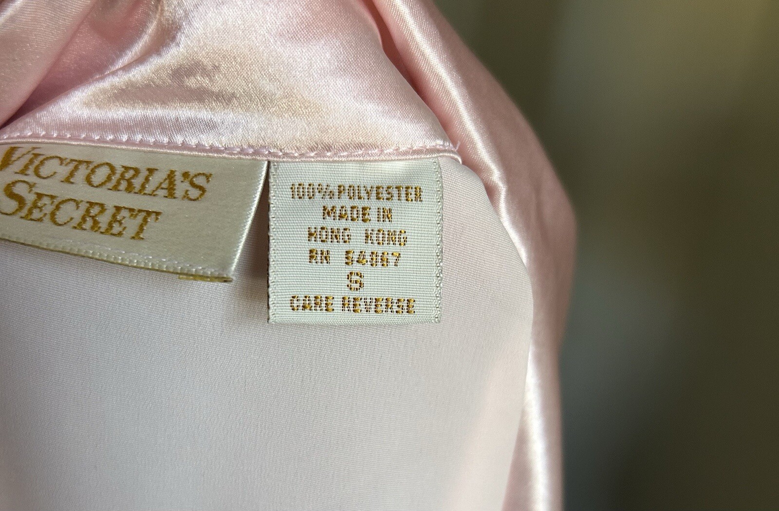 Vintage Victoria's Secret Nightshirt Small Pink Double Breasted Satin Gold Label