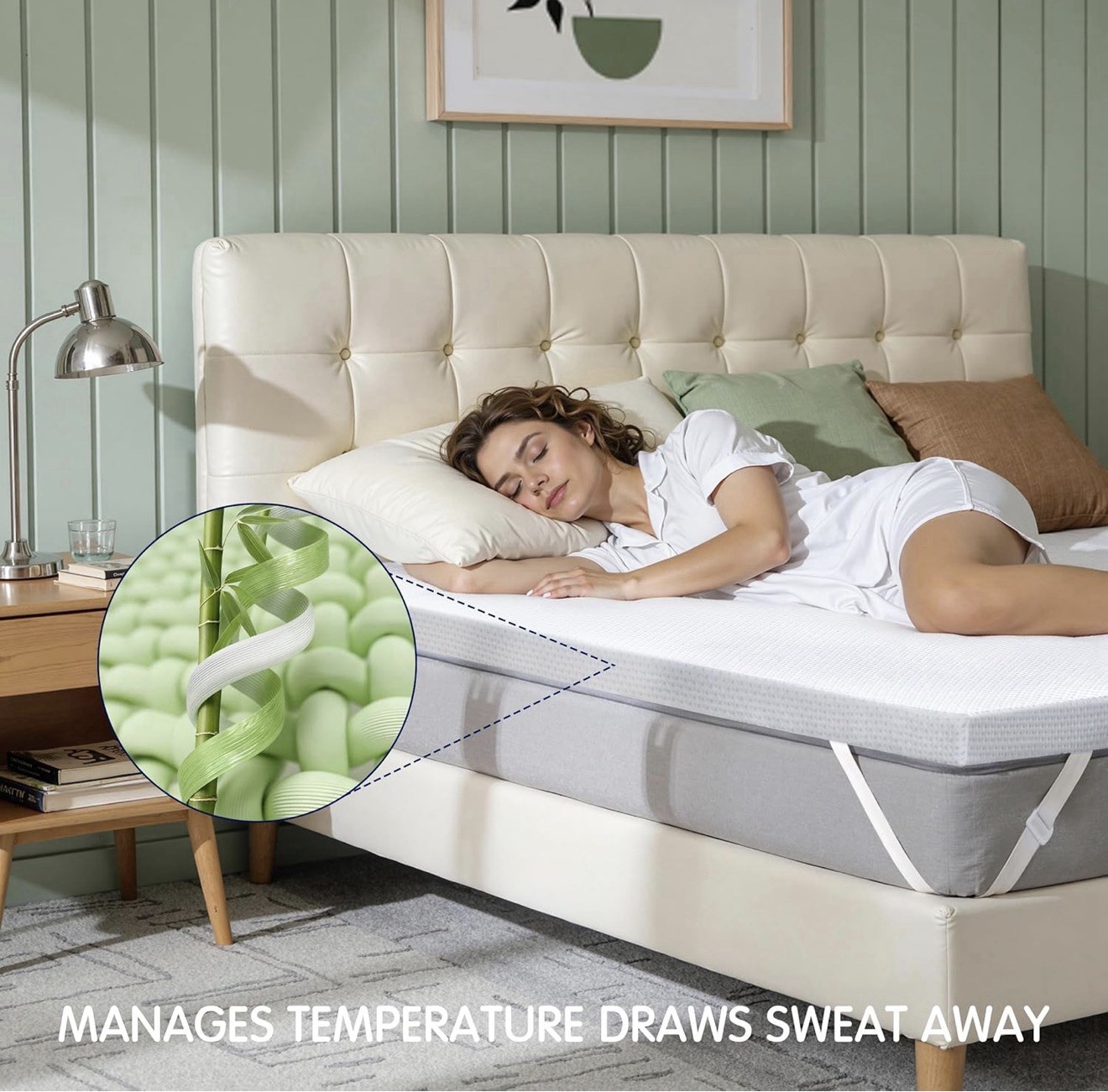 Cooling Mattress Topper Cover Bamboo Zipper Breathable King White