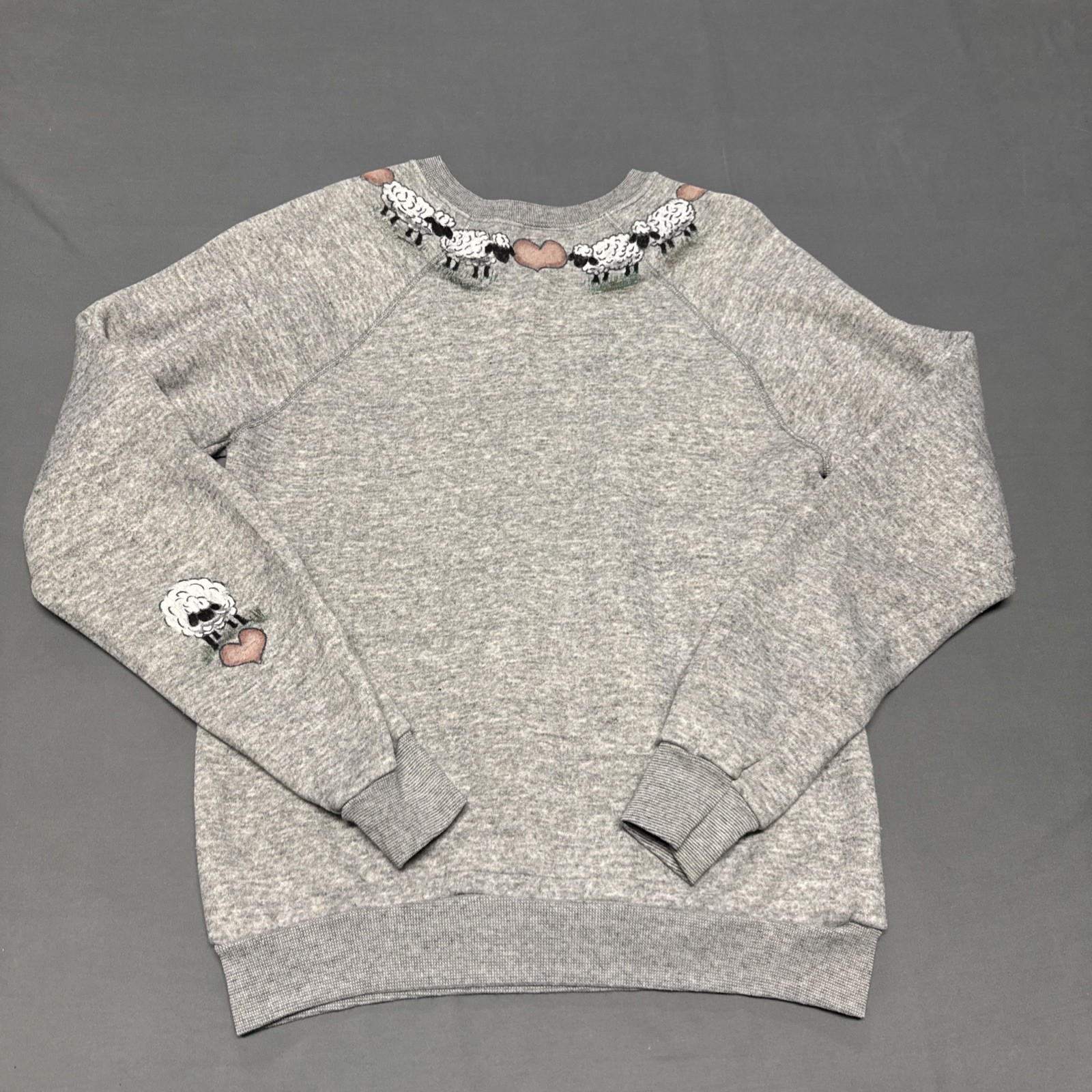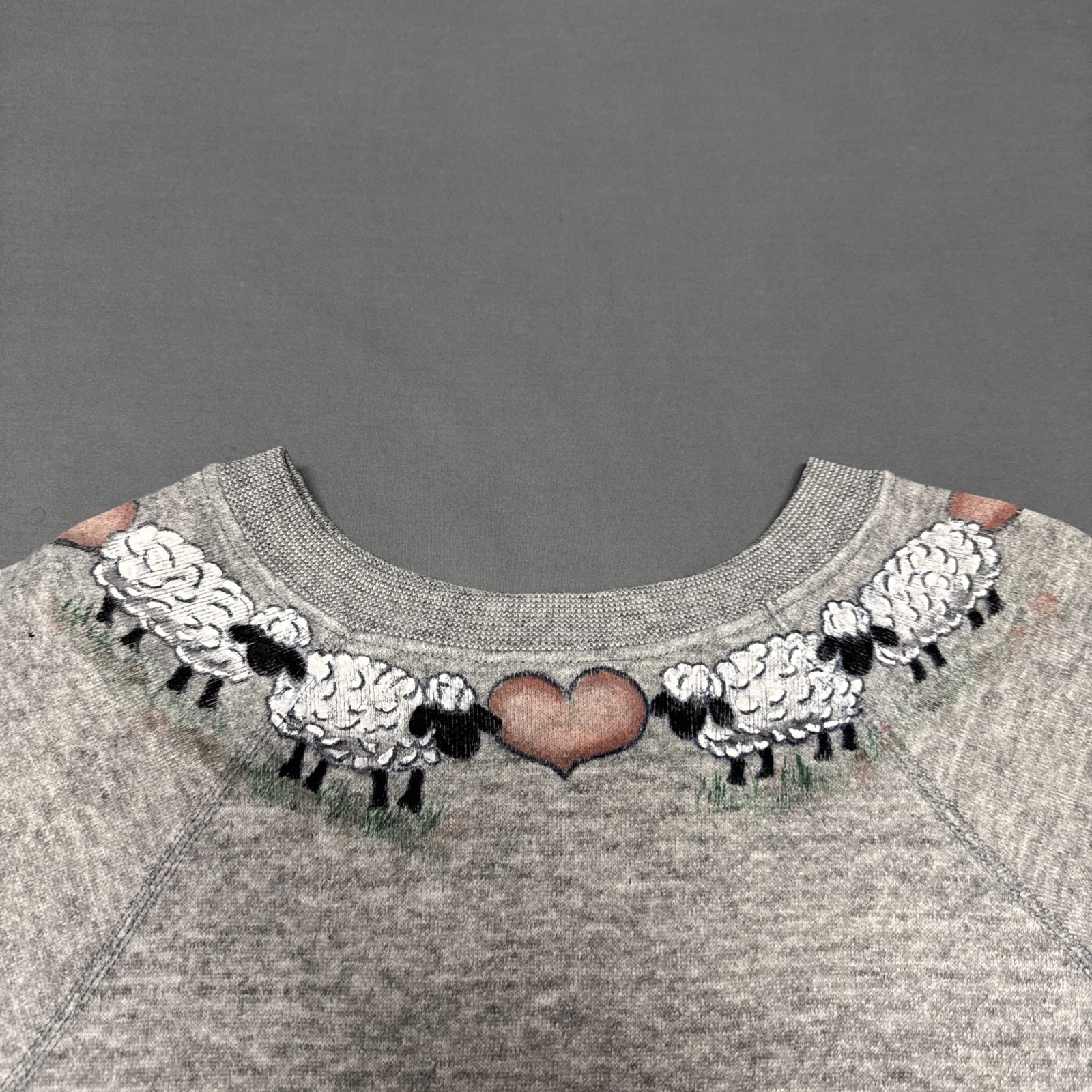 Vintage Sweatshirt Crewneck Sheep Hearts Gray 80s Grandmacore USA Made