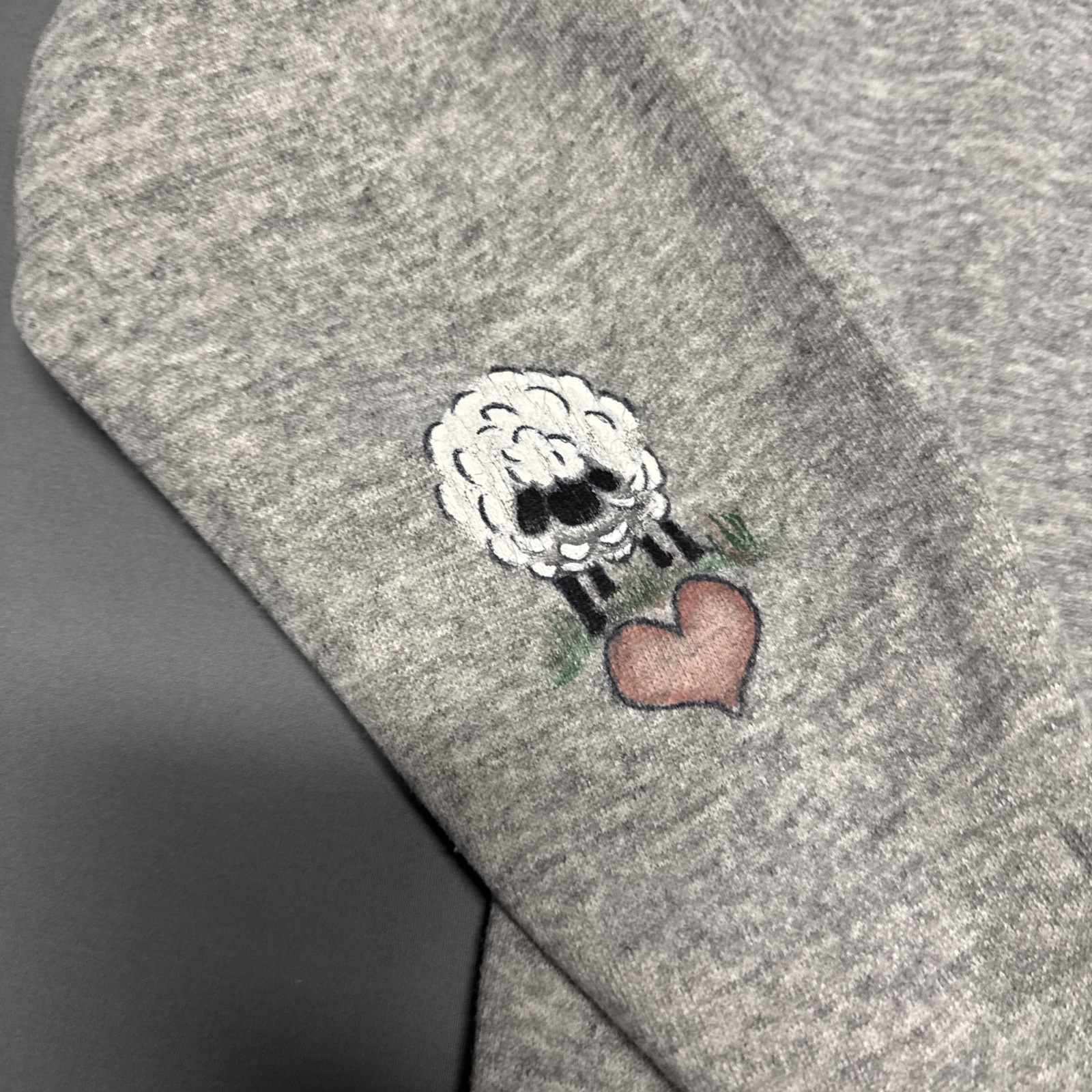 как выглядит Vintage Sweatshirt Crewneck Sheep Hearts Gray 80s Grandmacore USA Made фото