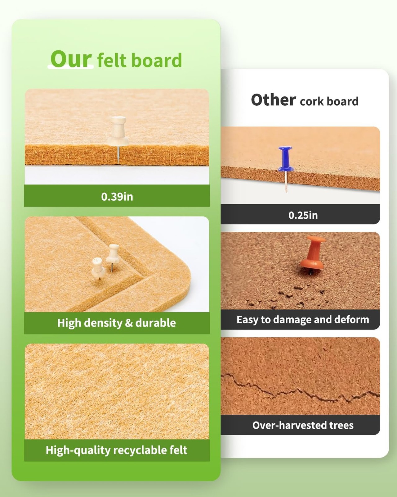 Bulletin Board, 36 x 24 inches Cork Board Alternative, 6 Pack Felt Pin Boards...