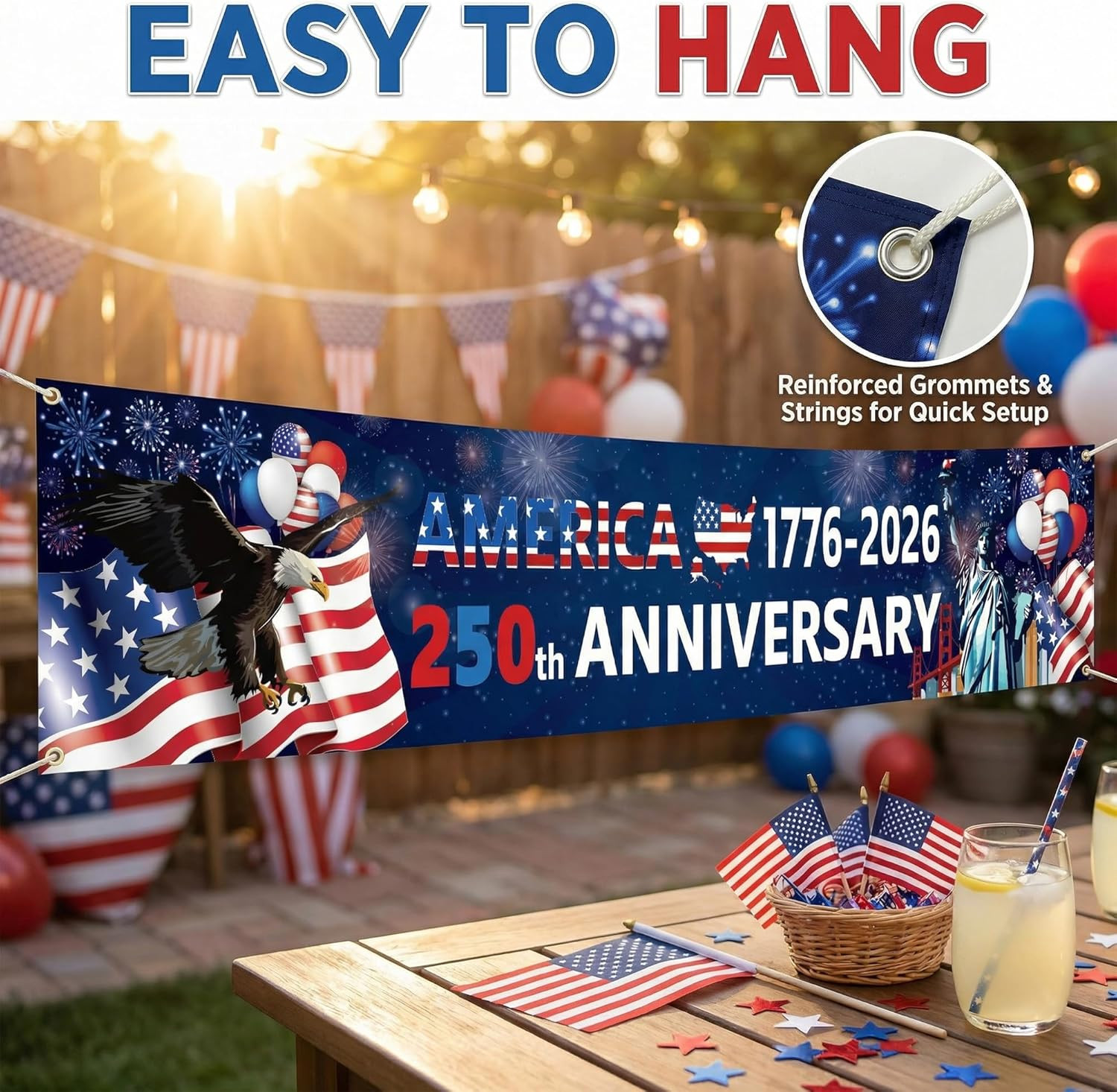 4Th of July Decorations - 1776-2026 250 Years Birthday American Anniversary Bann
