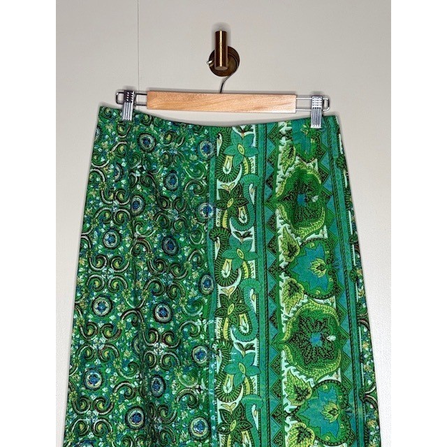 Vintage Green Psychedelic Paisley Floral Maxi Skirt Boho Retro 28 Waist