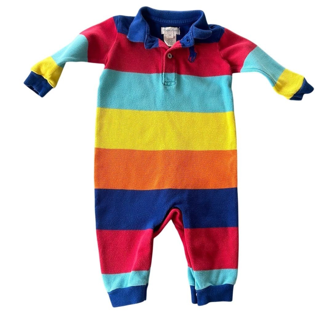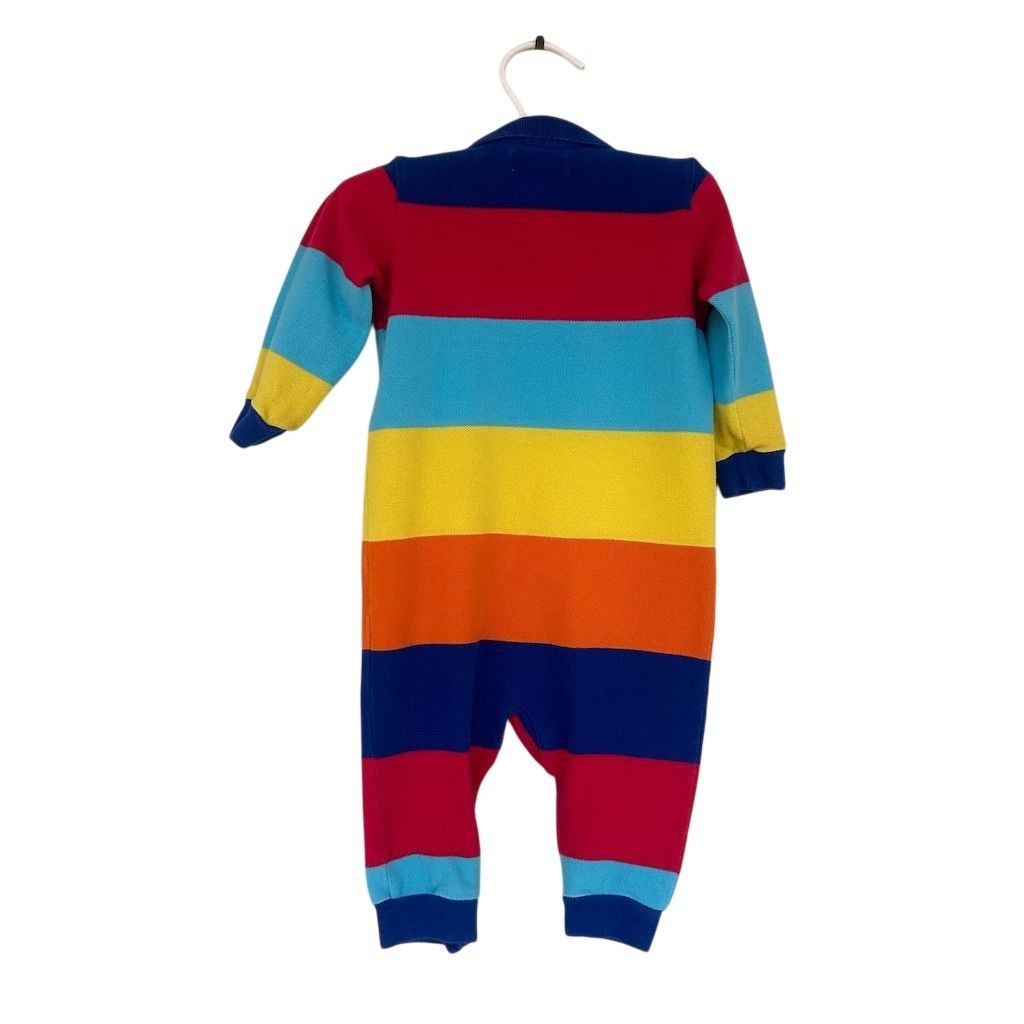 Ralph Lauren Romper Baby Boys 9M Multicolor Striped Long Sleeve Polo One Piece