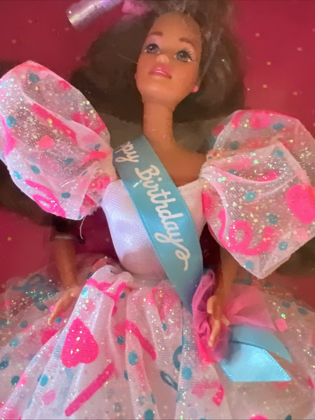 Mattel 1994 Birthday Barbie Doll Brunette Confetti Gown