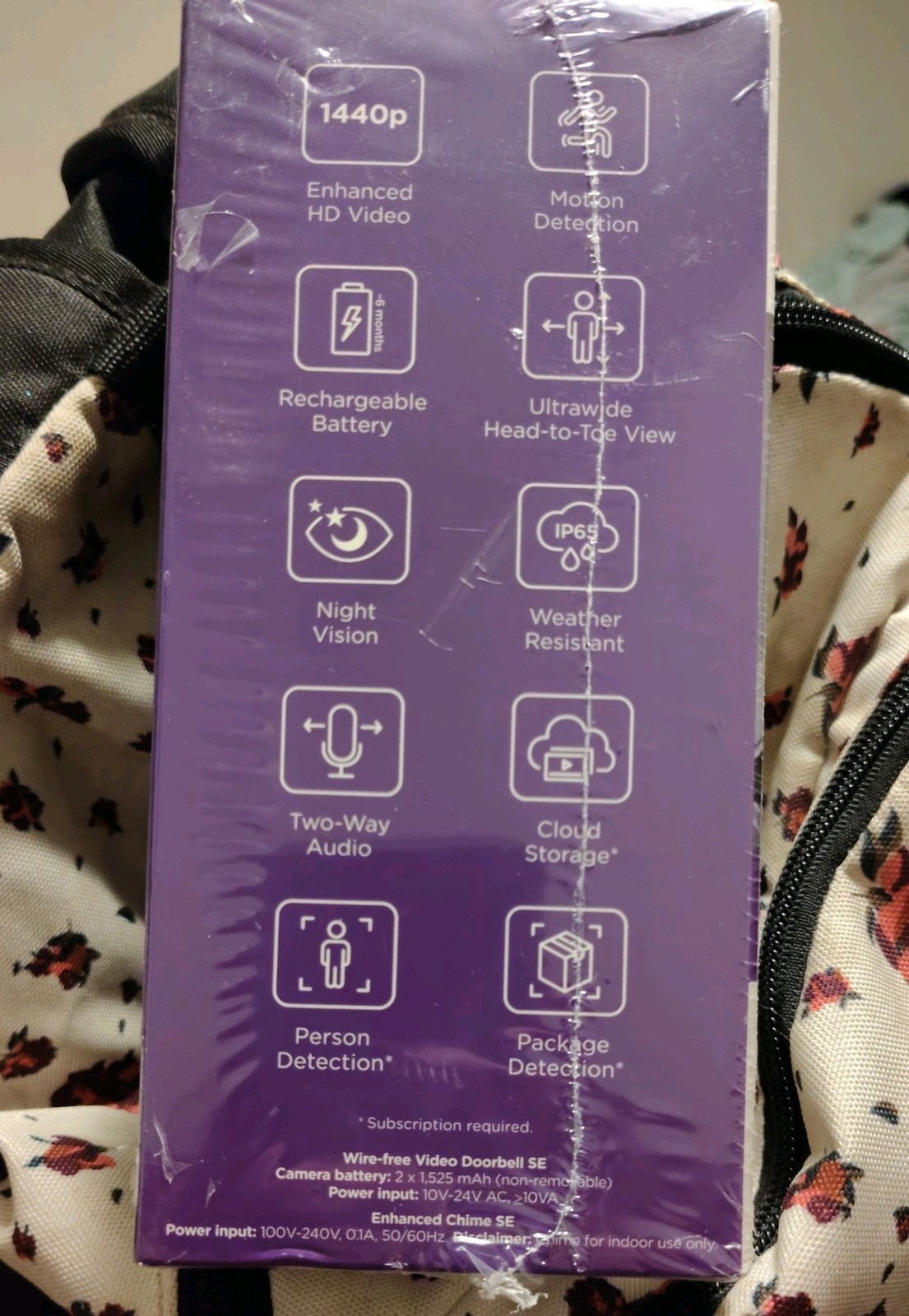 included_components: Doorbell, chime, USB charging cable, screw back plate, bac..